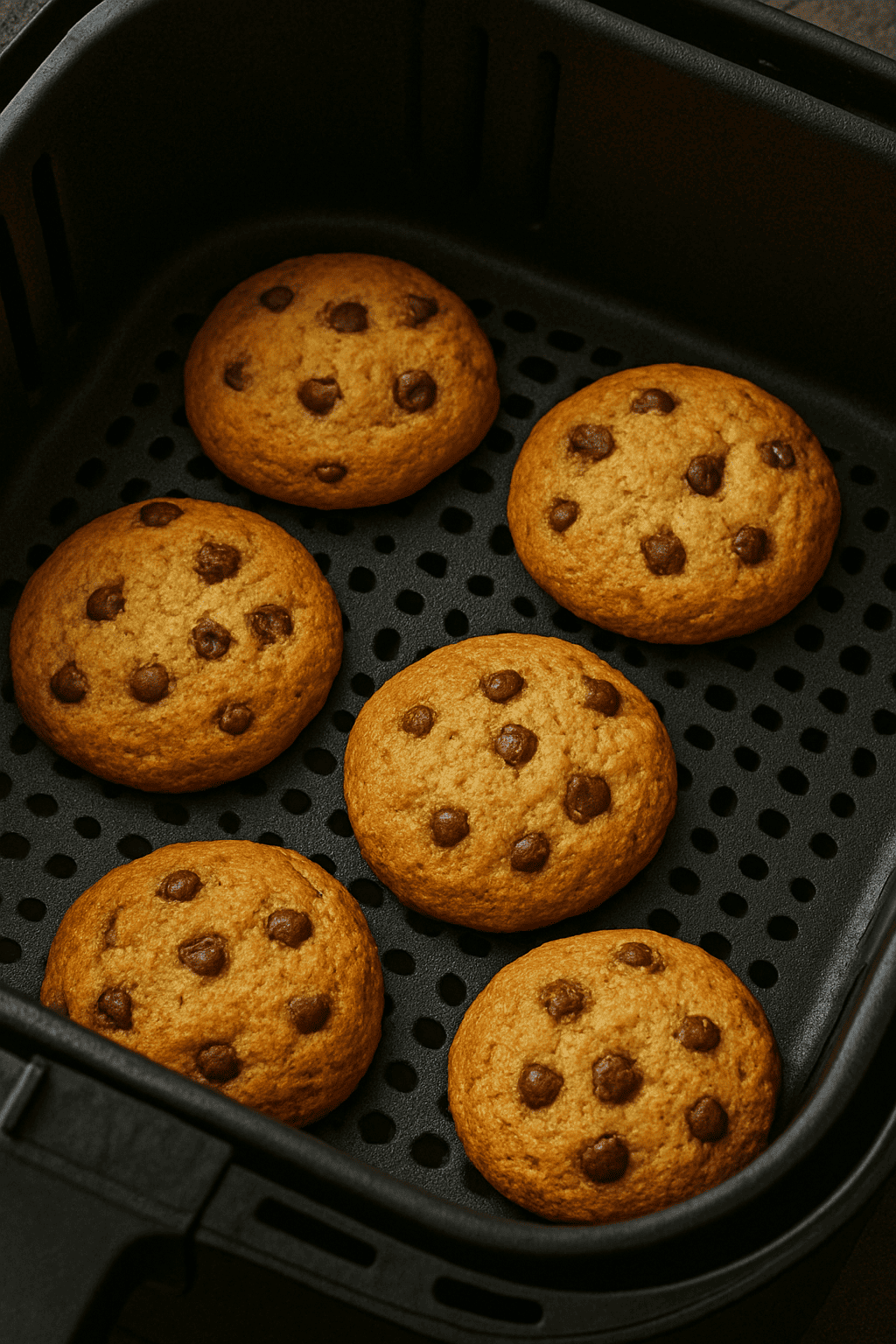 Entre 150 et 170 °C, selon la puissance de votre appareil. À 160 °C, comptez 6 à 8 minutes pour des cookies parfaits.