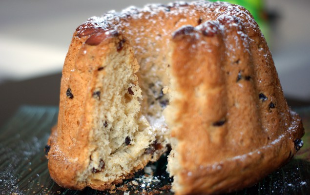 A la sortie du four, après l’avoir démoulé, vous pouvez l’enduire de beurre fondu et saupoudrer le d’un mélange de sucre fin et de cannelle.