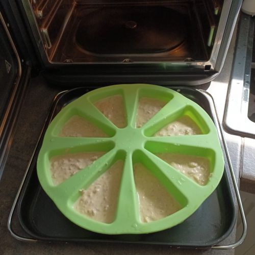 Cuisson: BAKE à 180° durant 15 minutes , moule déposé sur plaque de cuisson et en partie basse du combi.