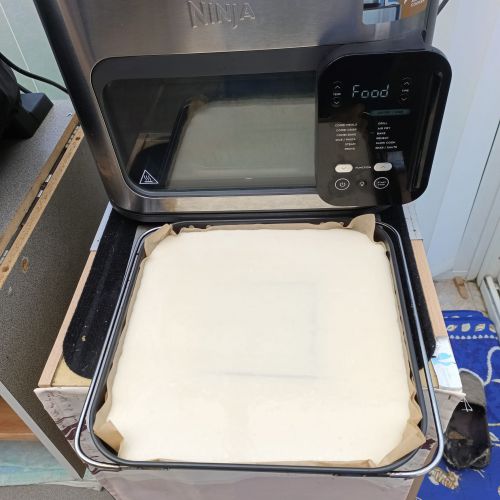 Je vous déconseille de mettre du papier cuisson car la pâte colle au papier ; je vous conseille d'huiler votre plateau de cuisson et de déposer la pâte ainsi pour une meilleure cuisson ......