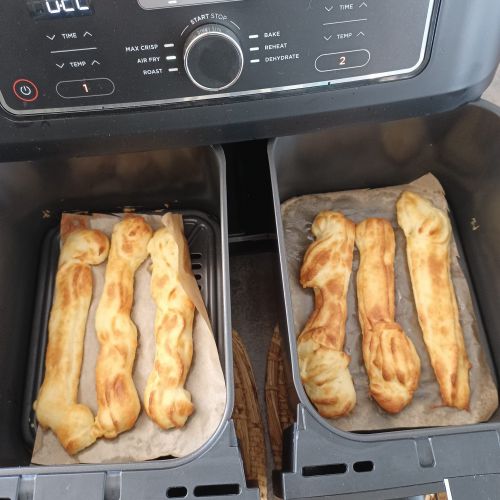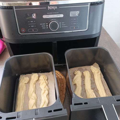 Cuisson : AIR FRY à 180° durant 14 minutes ; j'avais mis 12 minutes et j'ai ajouté 2 minutes pour qu'ils soient bien dorés ; laisser refroidir et parsemer de sucre.