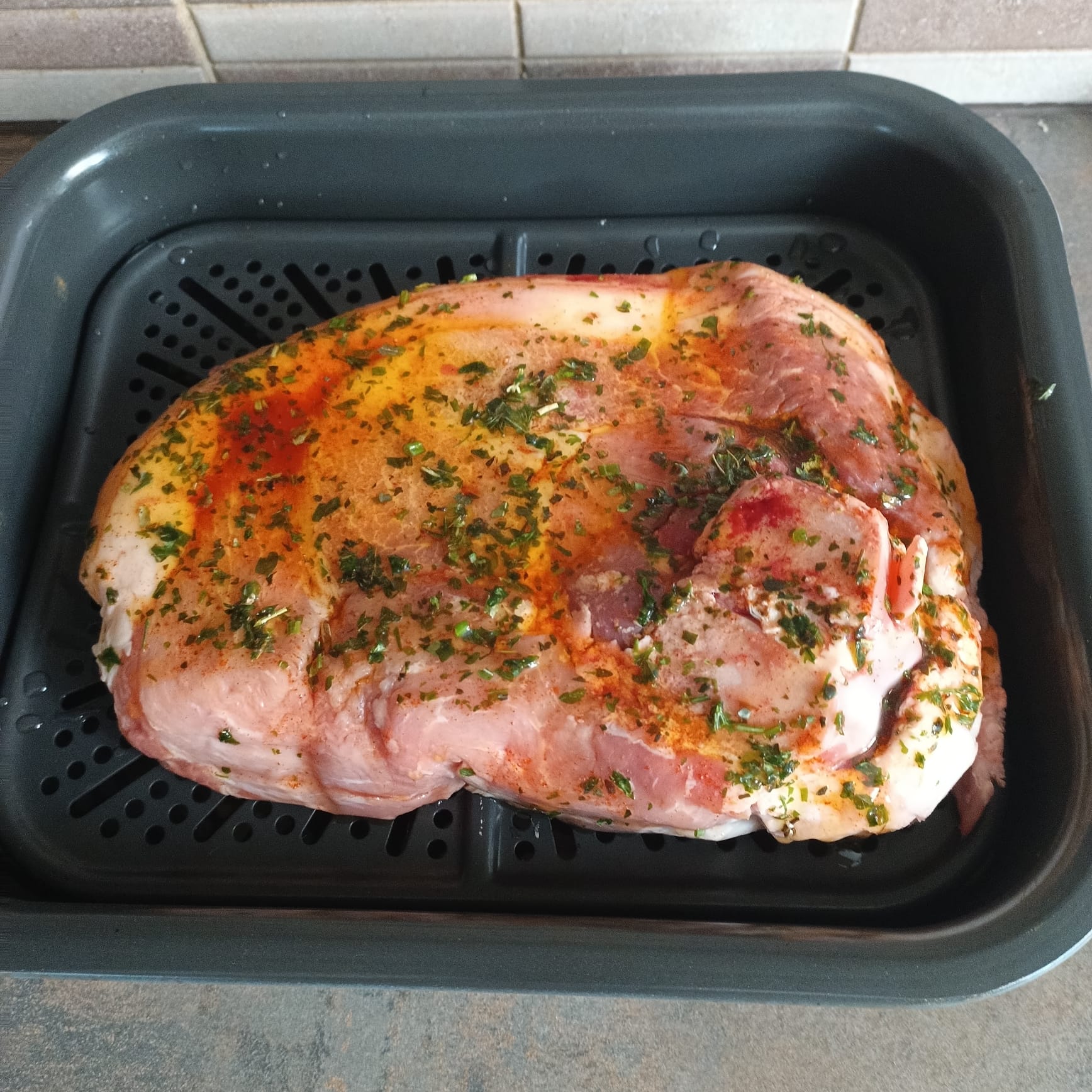 Une rouelle de porc d'environ 1 kg + huile + herbes italiennes Lidl + paprika