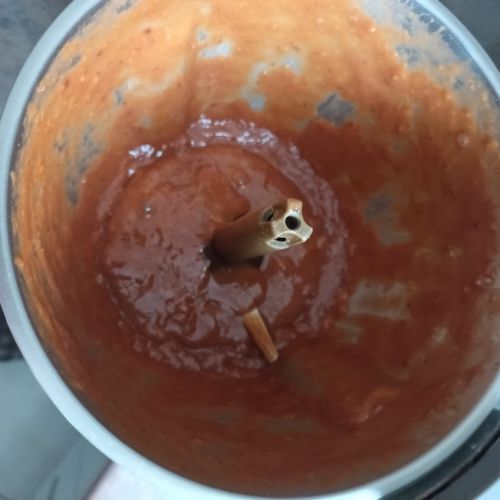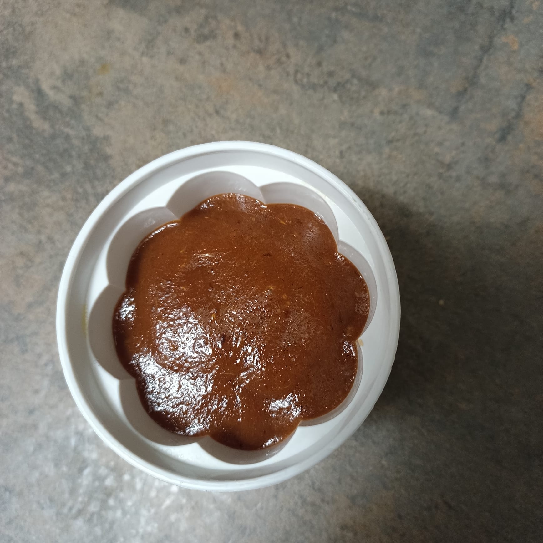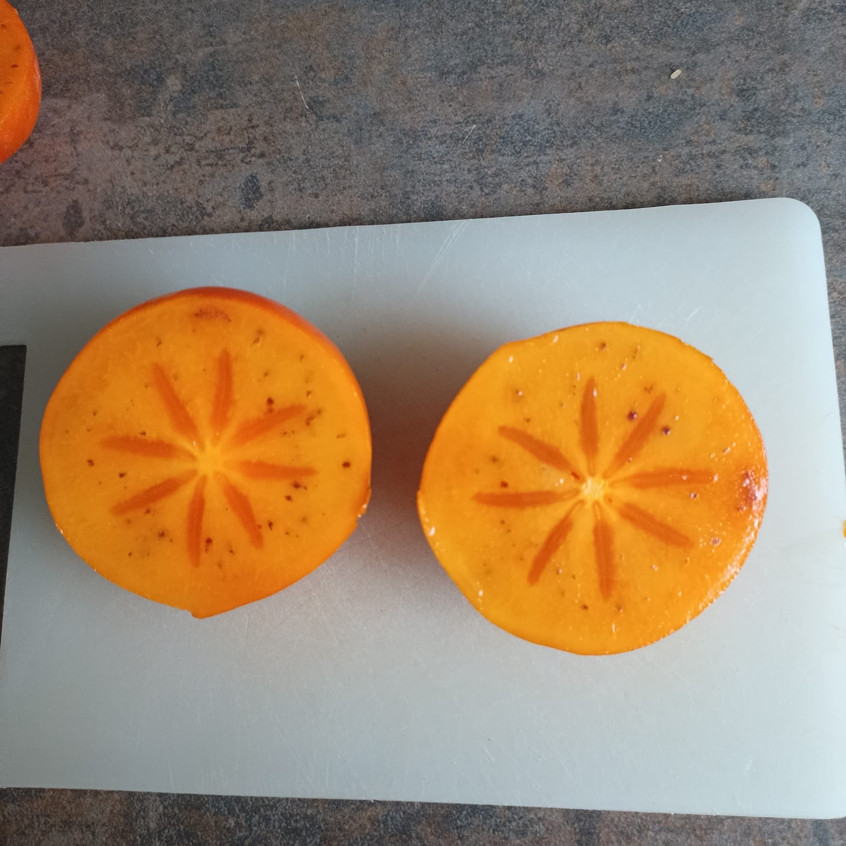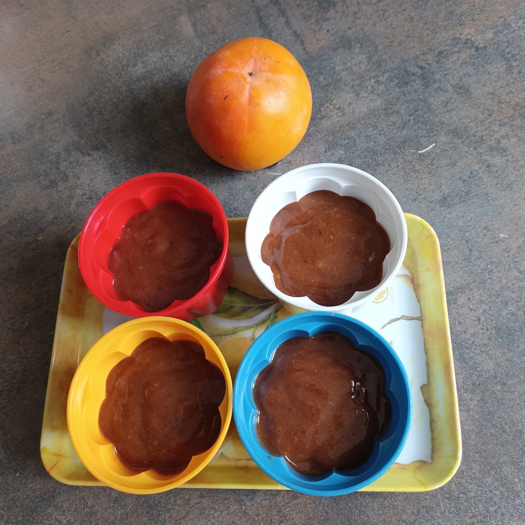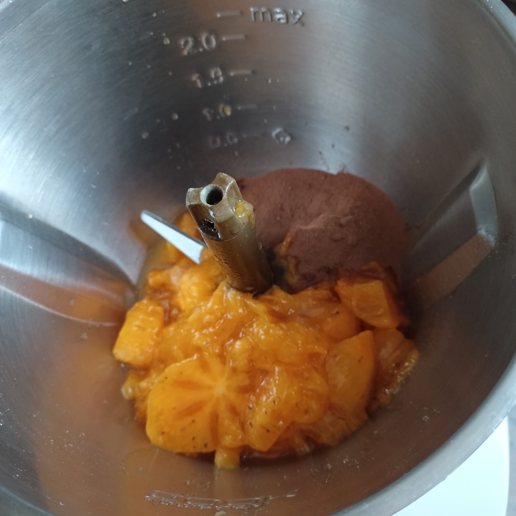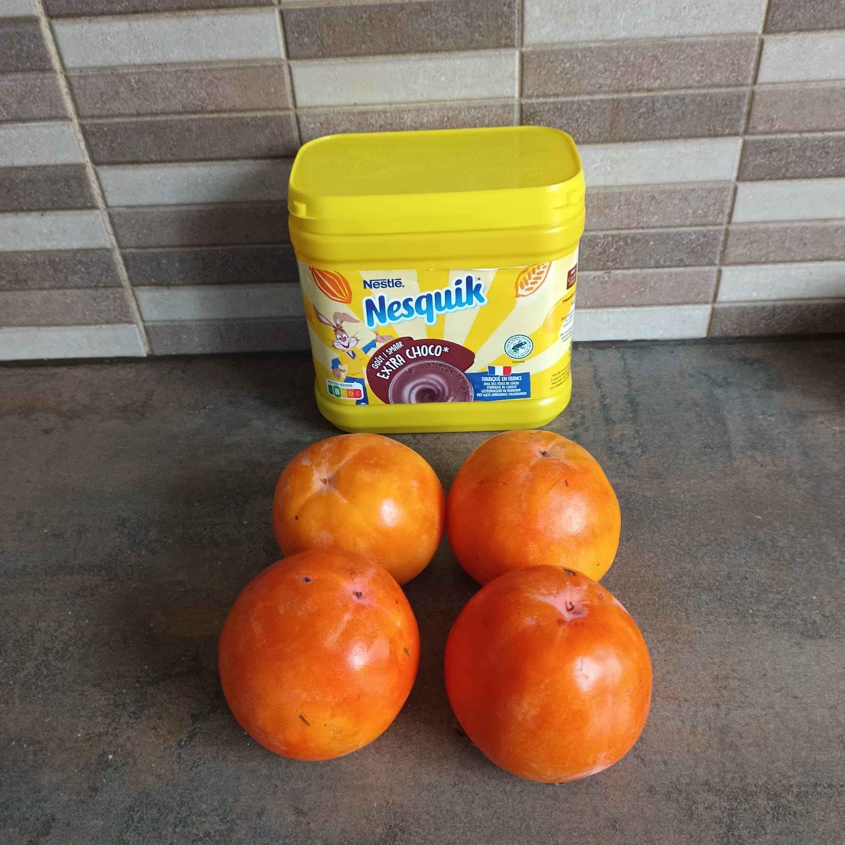 Mixer la chair de 3 kakis et ajouter 2 cuillères à soupe de cacao (j'ai utilisé du nesquik).