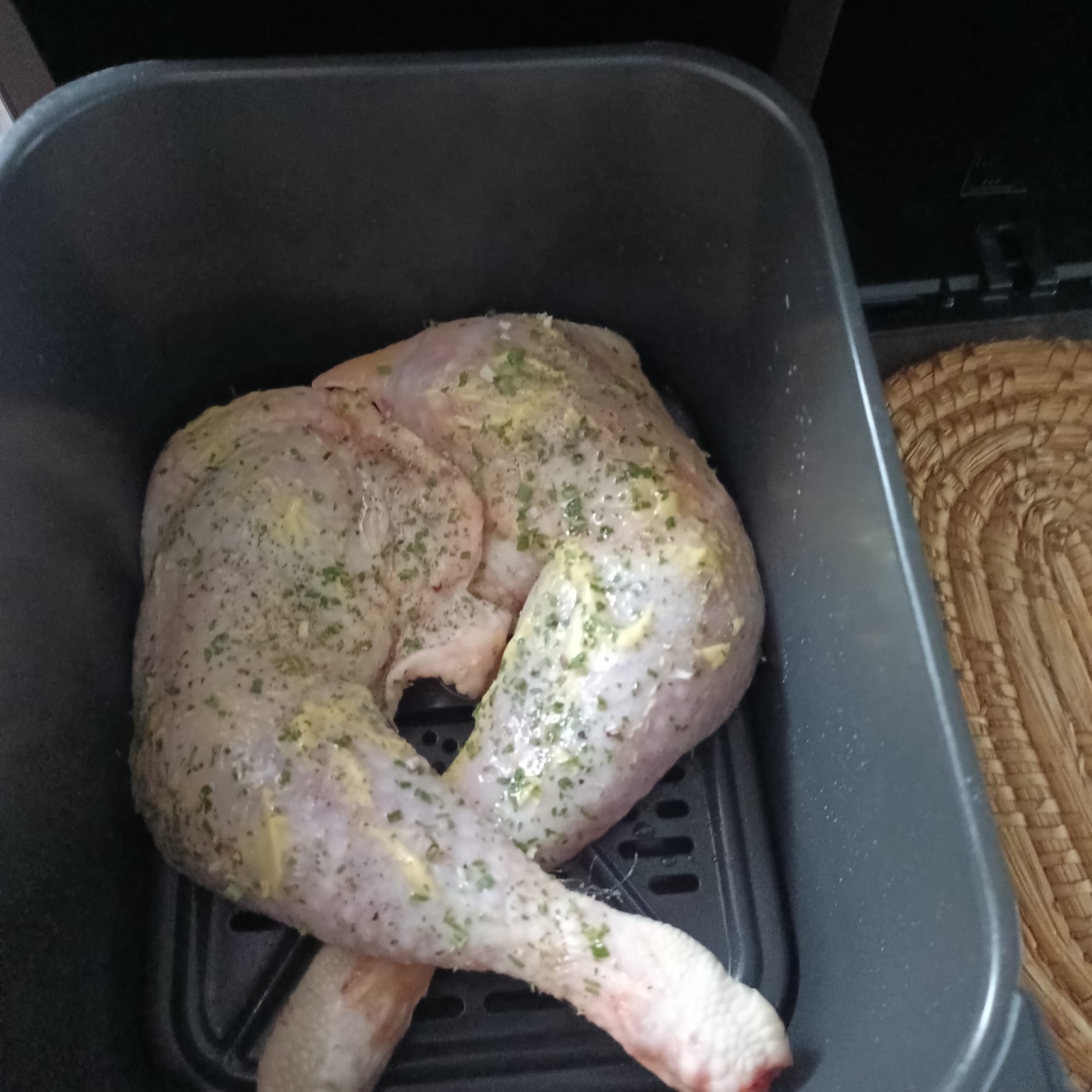 2 cuisses de poulet + un peu de moutarde + sel poivre persillade