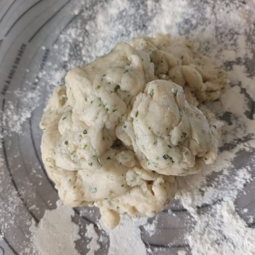 250 g de farine + 8 cl d'eau + 8 cl d'huile colza + 2 pincées de sel + 1 cuillère à soupe d'Herbes de Provence