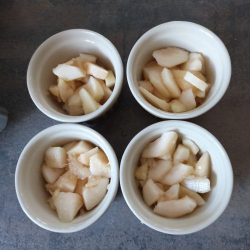 1 poire coupée en petits dés pour chaque ramequin.