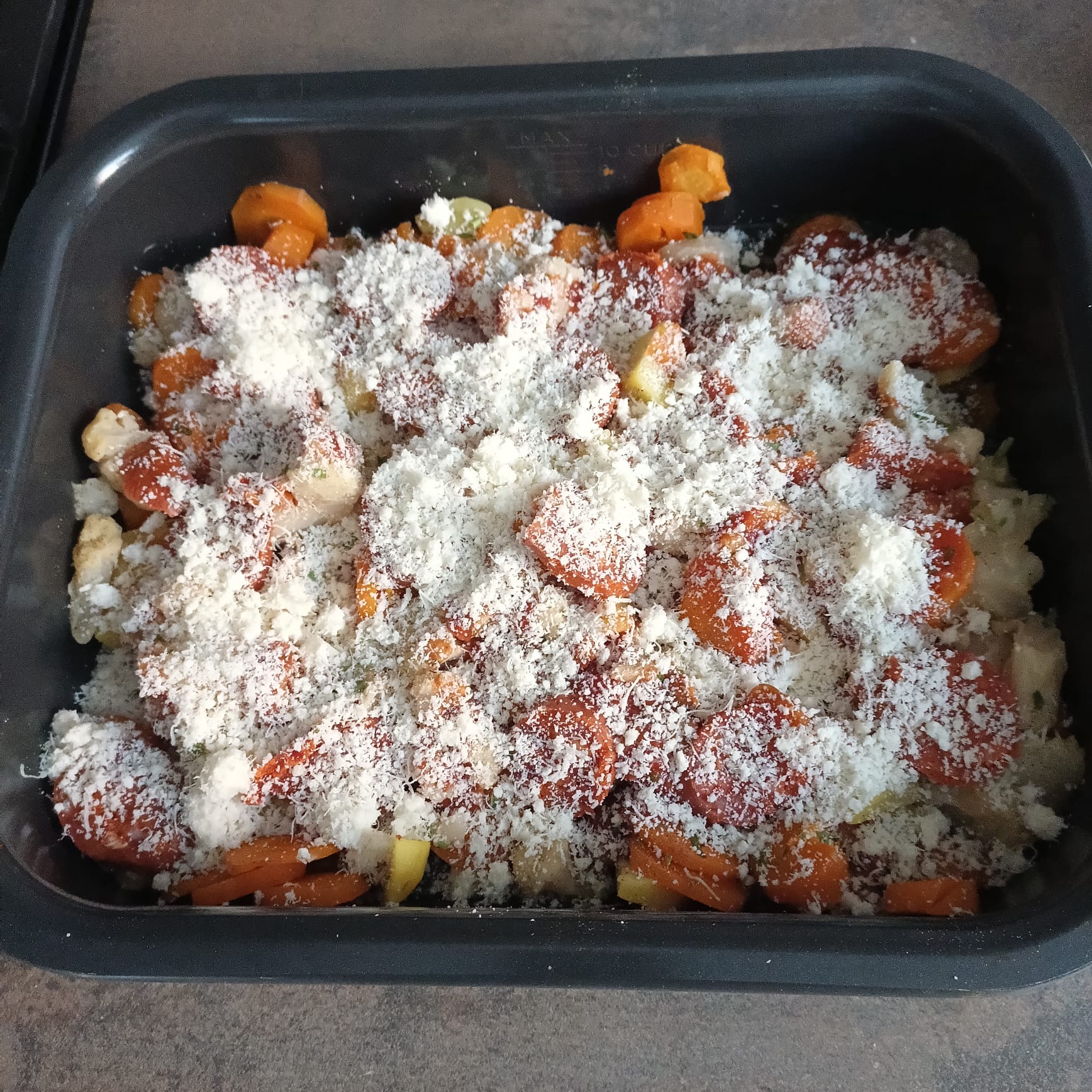 Cuisson : BAKE à 190° durant 20 minutes en partie basse , le temps que les légumes soient chauds et que le fromage fonde.