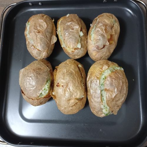 Cuisson : BAKE à 200° durant 10 minutes en partie basse , le temps que le fromage fonde et que l'intérieur des pommes de terre soit chaud.