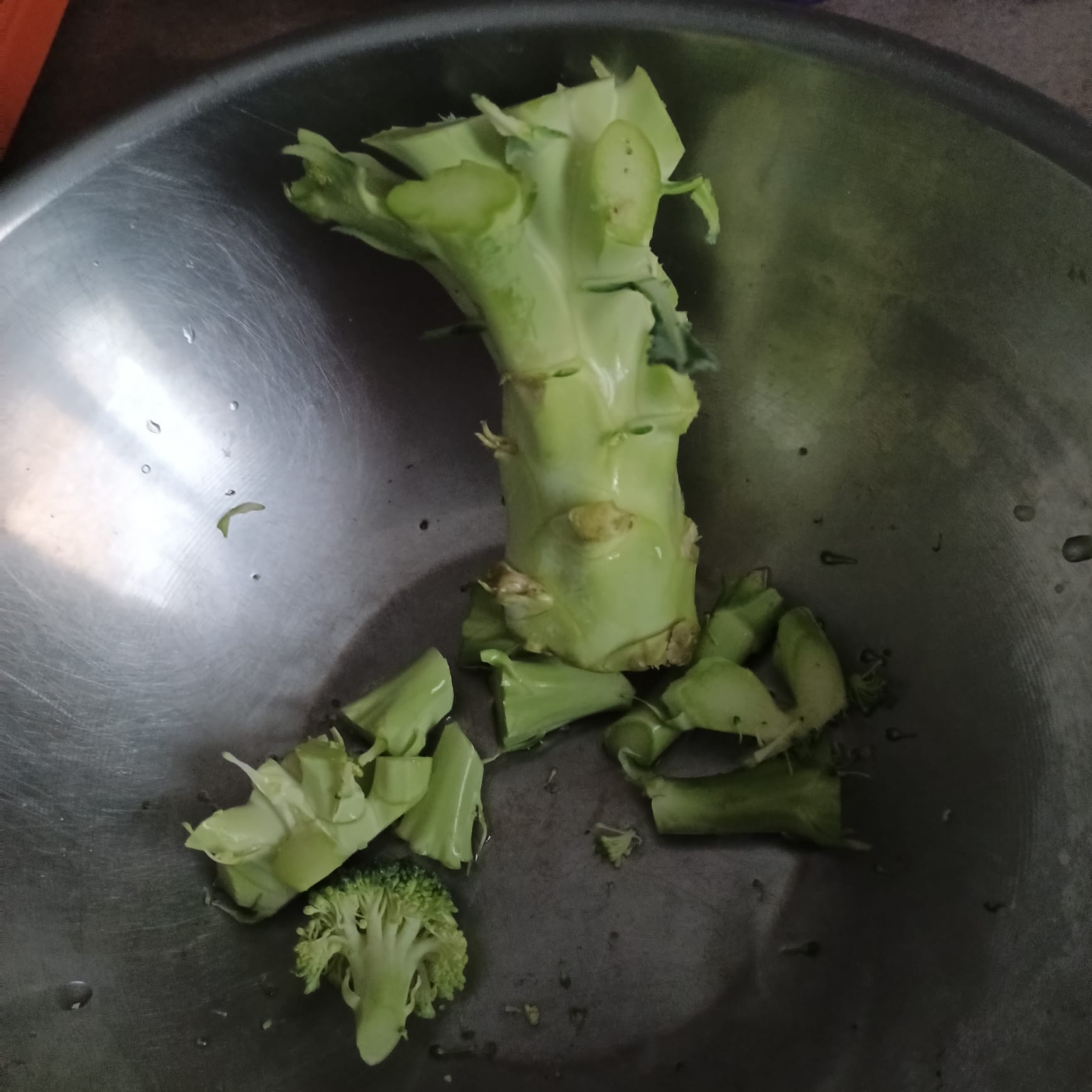 Vous savez que je n'aime pas gaspiller ; j'ai acheté un brocolis frais pour faire un gratin et comme les tiges et troncs se mangent ..... j'en ai fait des petits gratins.