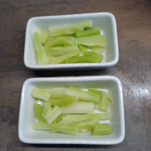 Eplucher les tiges et tronc et ne garder que l'intérieur ; cuire à la vapeur en mode STEAM durant 10 minutes avec 30 cl d'eau chaude dans le plat combi avec la grille.