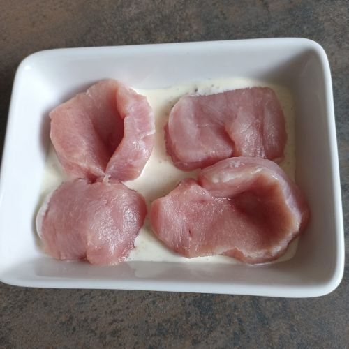 4 médaillons de filet de dinde + moutarde fine et moutarde à l'ancienne + sel poivre ail