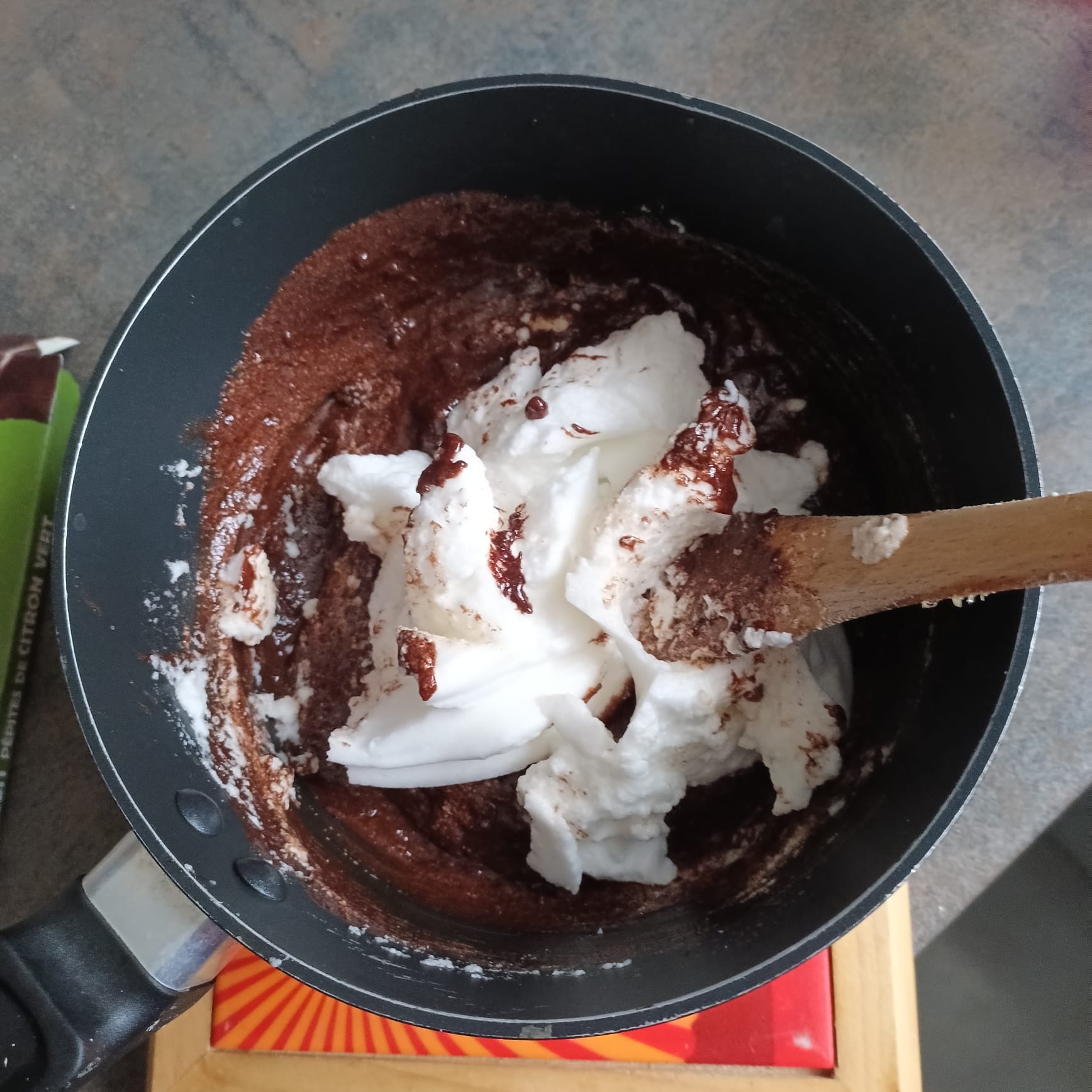 Battre le blanc d'oeuf en neige ferme et ajouter délicatement.