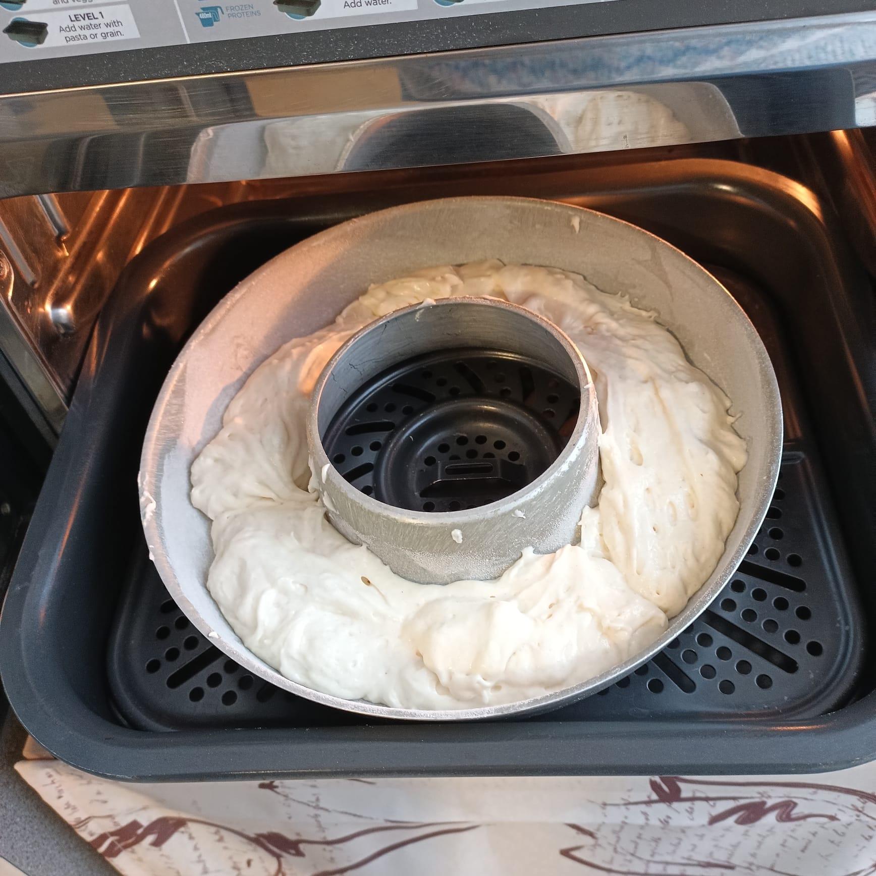 Verser dans un moule à savarin et cuire en mode BAKE à 180° durant 25 à 30 minutes , moule posé sur la grille du plat combi en partie basse du combi Ninja.