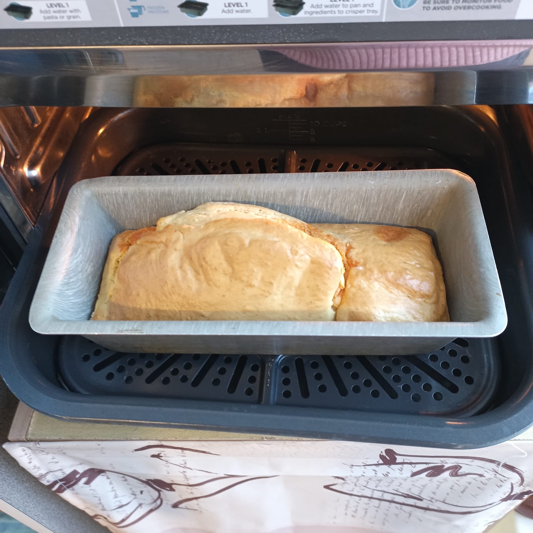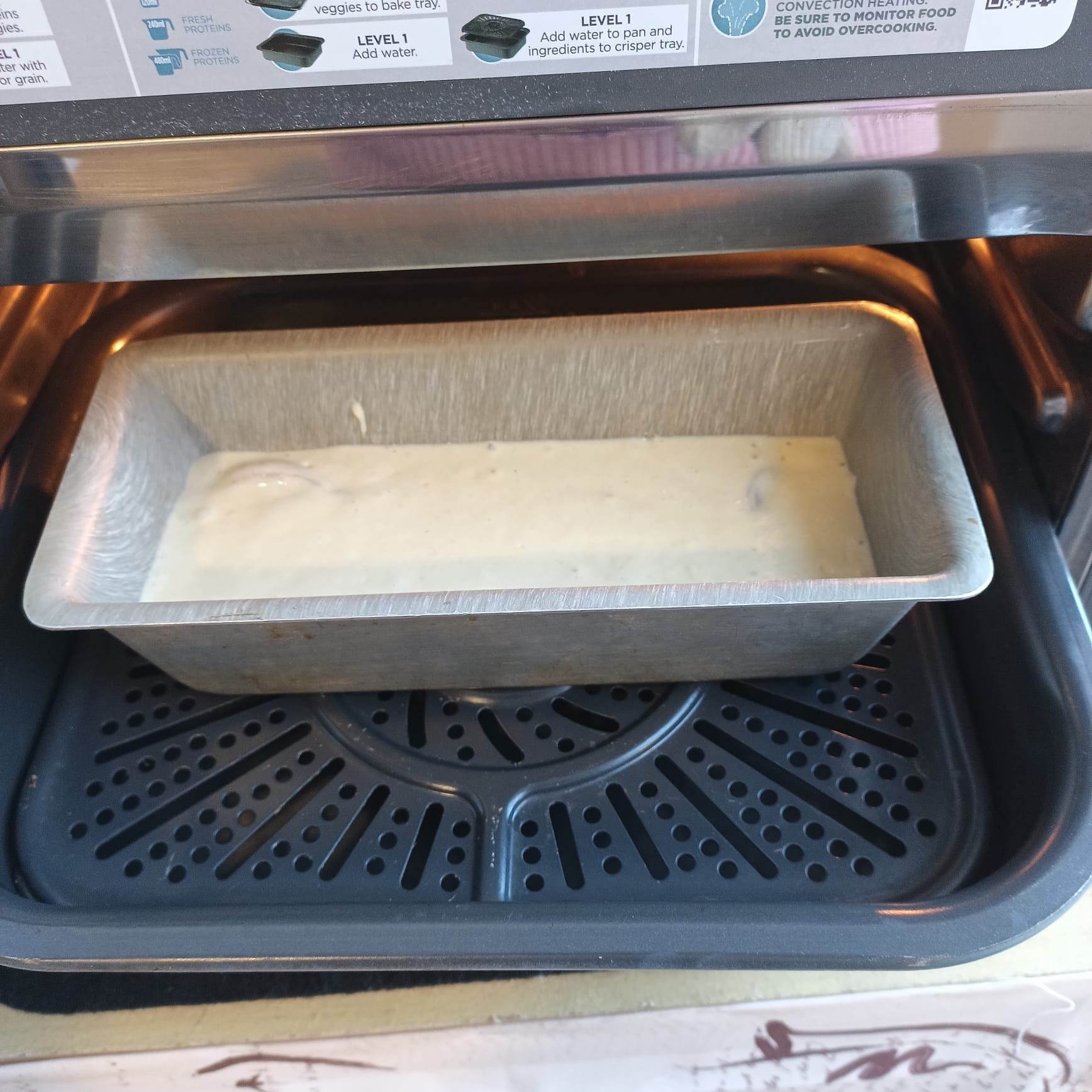 Verser dans un moule à cake rectangulaire posé sur la grille et le plat combi.