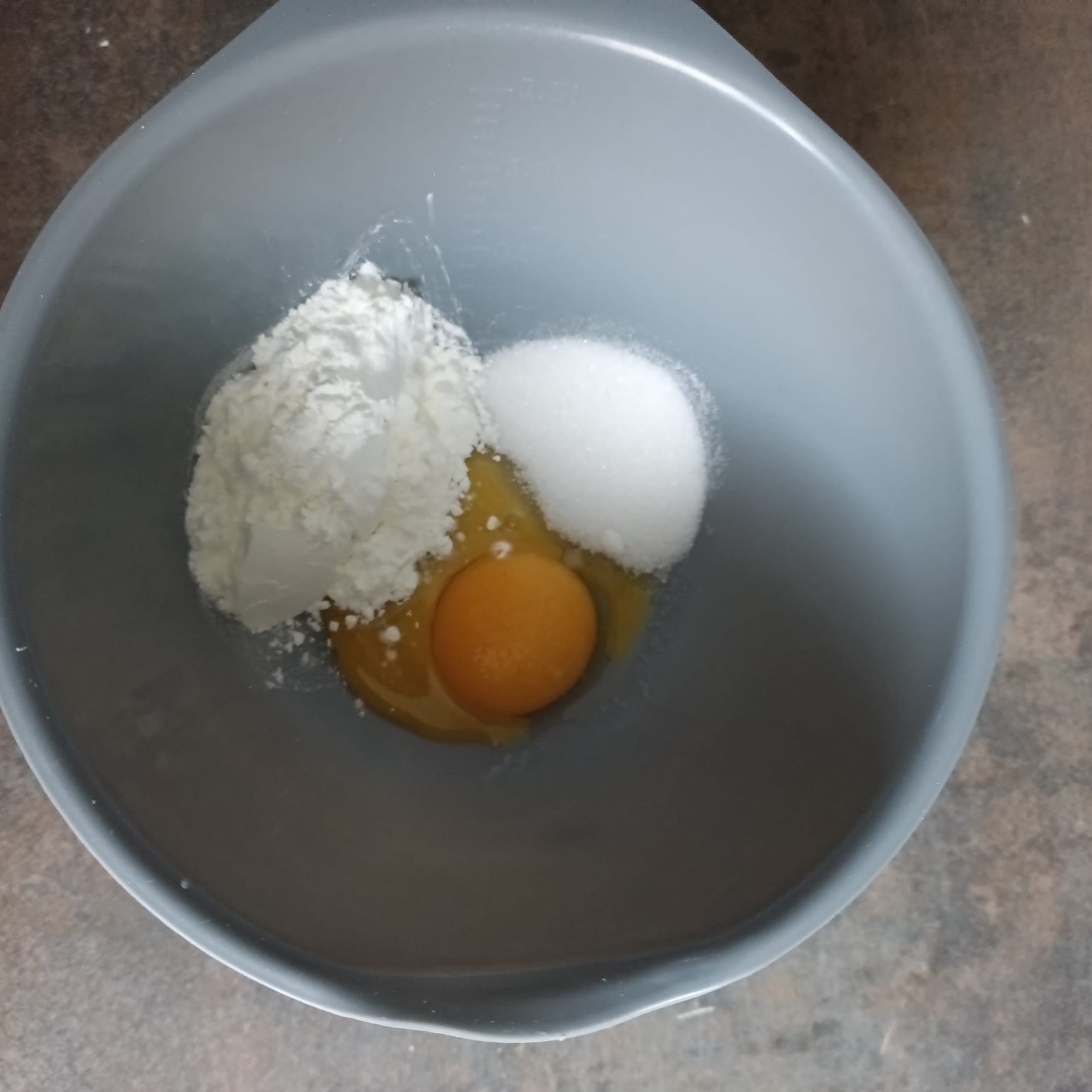 Dans un saladier, mélanger 3 jaunes d'oeufs + 3 cuillères à soupe de sucre + 2 cuillères à soupe de maïzena.