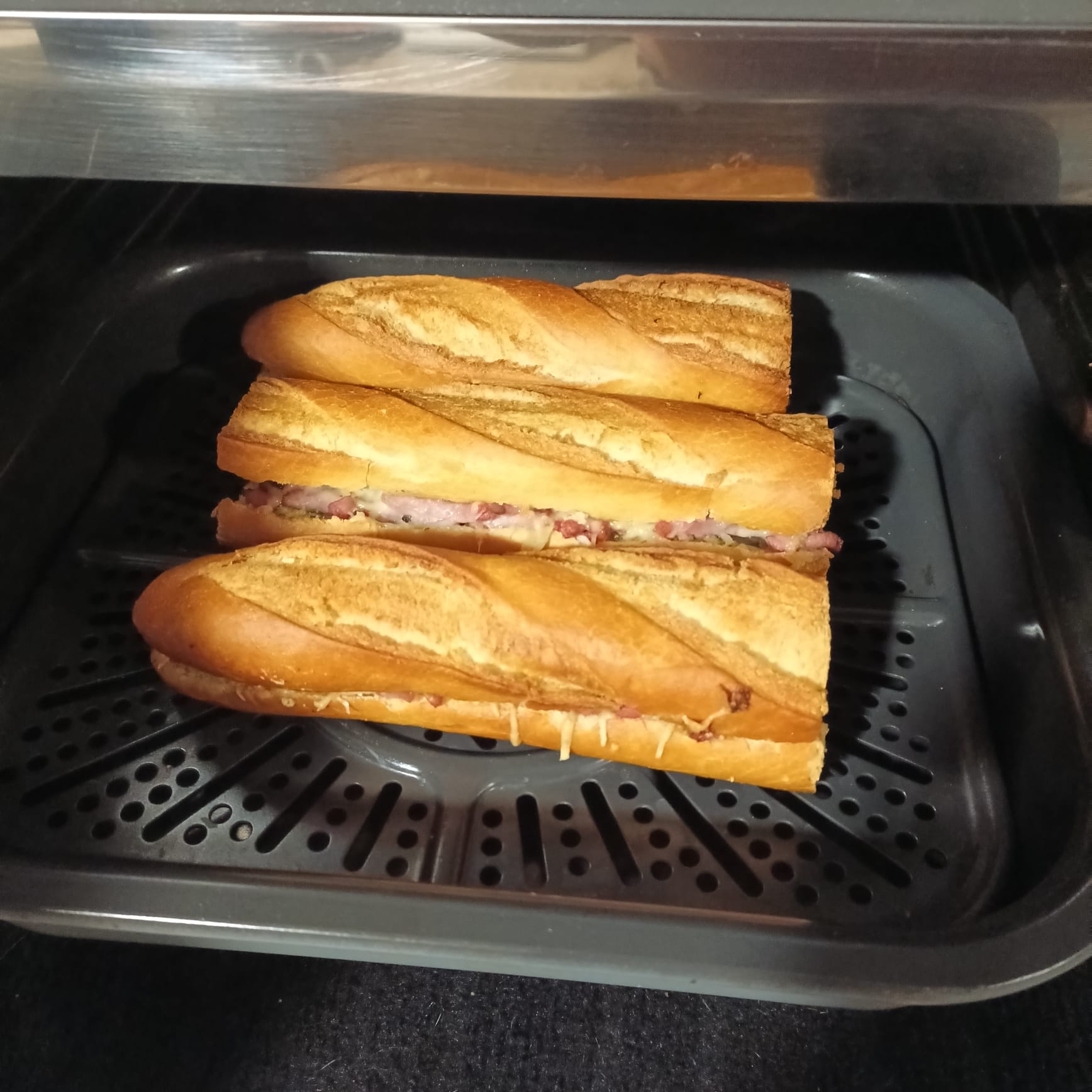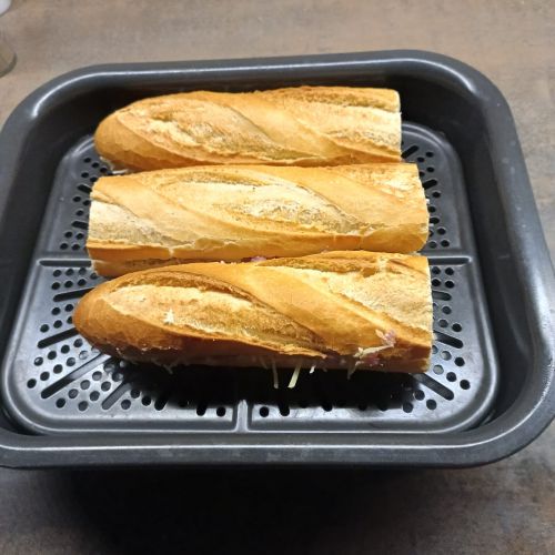 Déposer chaque morceaux de baguette farcie sur la grille du plat combi.