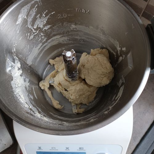 Pétrir ces ingrédients ensembles..... pour ma part, j'ai utilisé mon robot pétrisseur mais vous pouvez le faire manuellement ...... durant 2 à 3 minutes de pétrissage.
