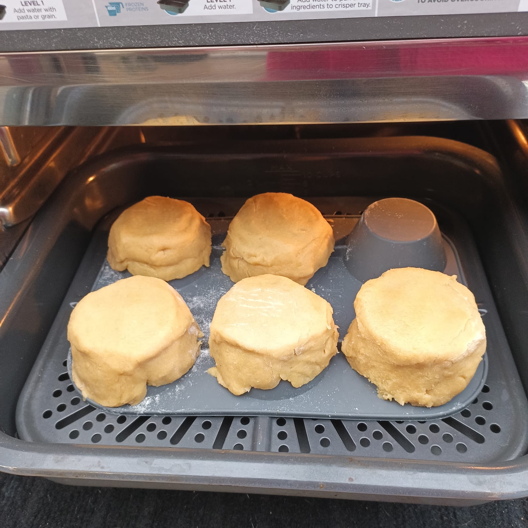 Etaler cette pâte et déposer sur les moules à muffins à l'envers.