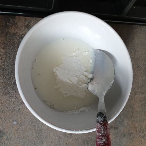 Dans un ramequin, mélanger 20 g de maïzena avec 2 cuillères à soupe prélevées sur les 30 cl de la casserole.