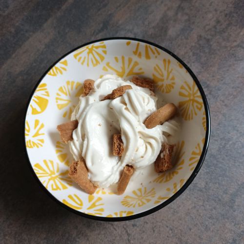 Déposer des miettes de spéculoos sur le dessus avant de déguster .....