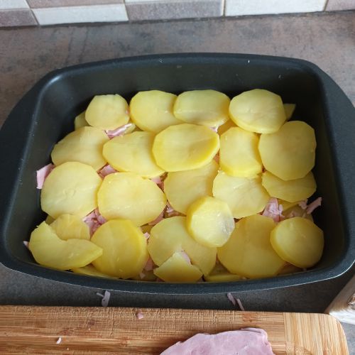 déposer une couche de pommes de terre comme sur la photo.