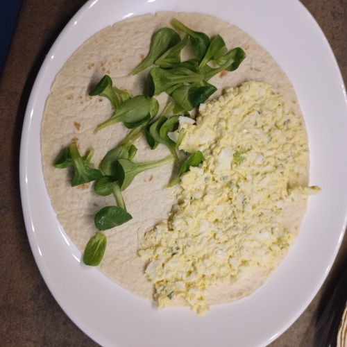 Déposer une couche sur chaque wrap , ajouter un peu de mâche et les rouler.