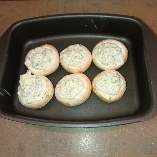 Nettoyer les champignons ; creuser légèrement les chapeaux et les poser sur un plat.