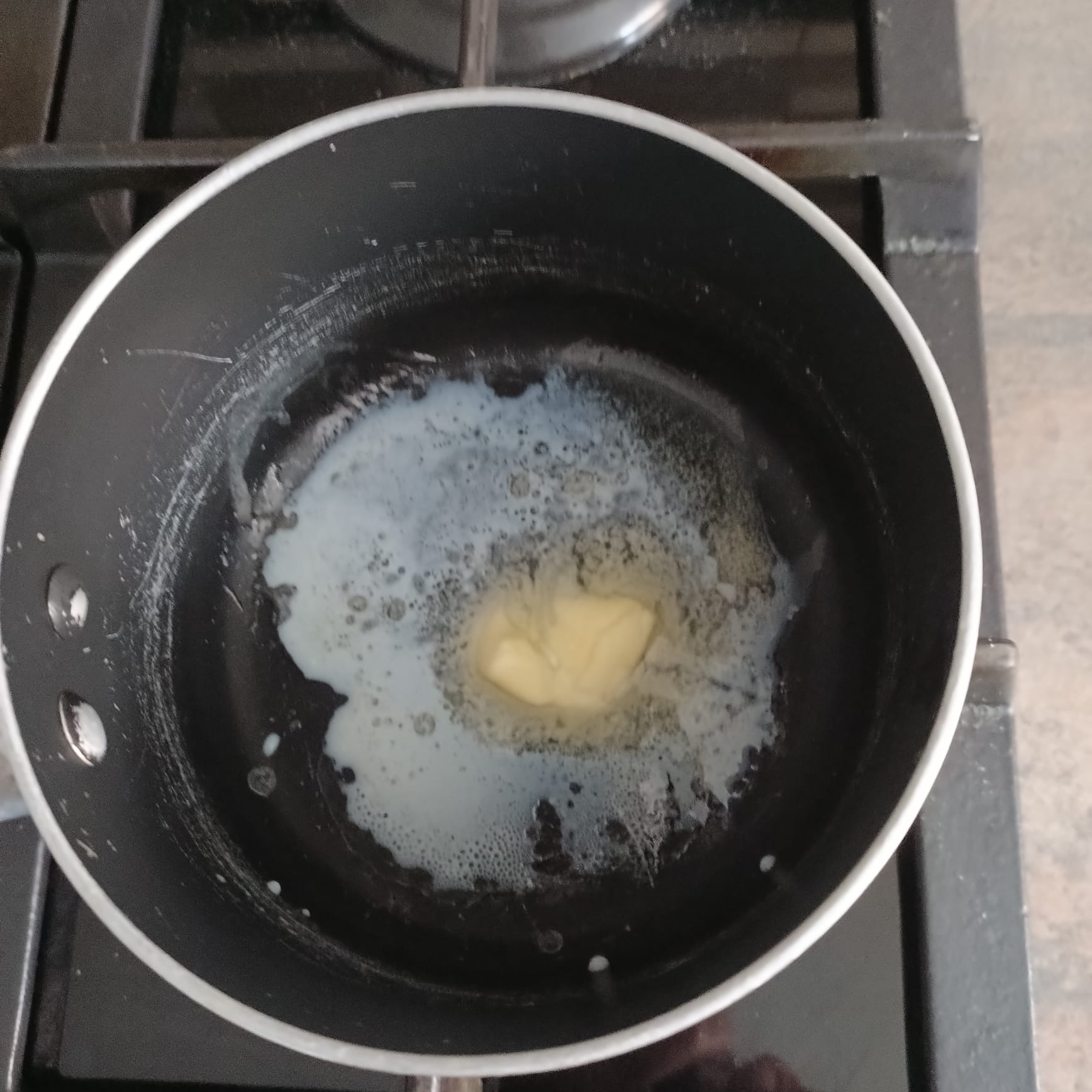 Délayer un peu de beurre et de lait et badigeonner sur la pâte feuilletée.