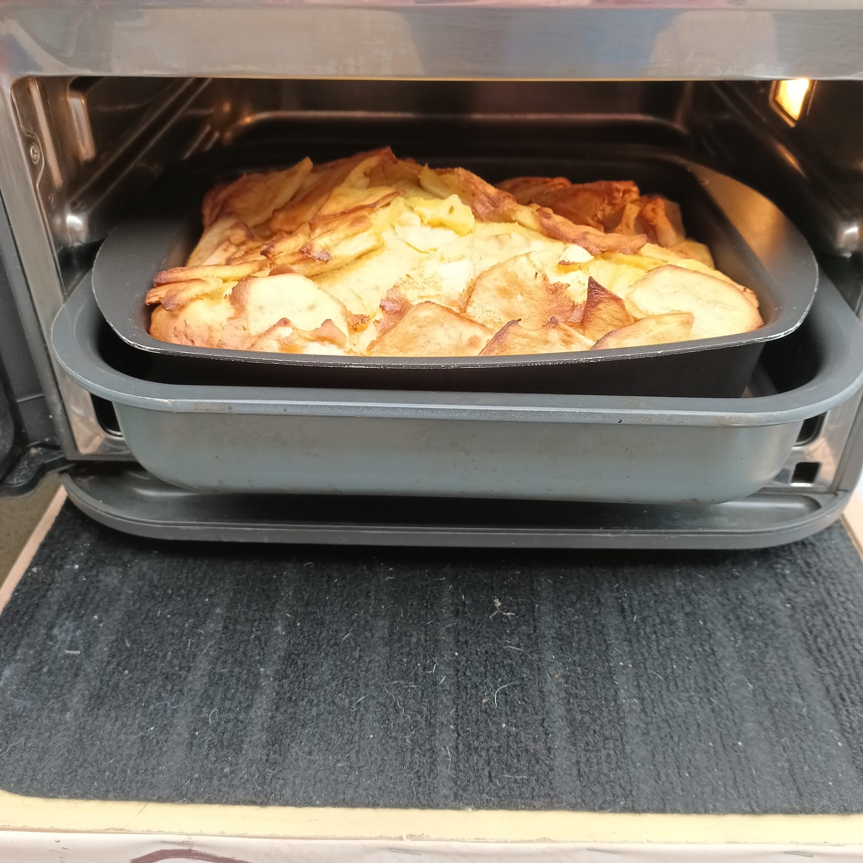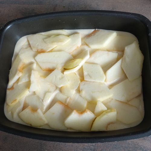 Rajouter de la pâte ainsi que des lamelles de pomme.