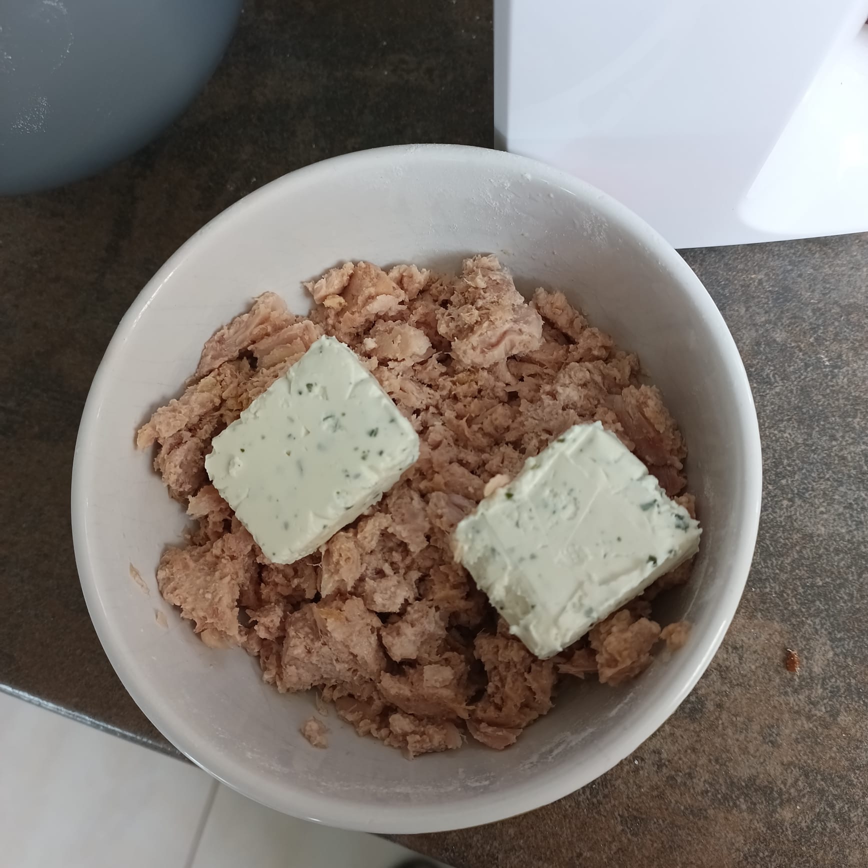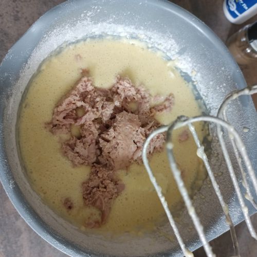 ajouter 300 g de farine + 1/2 sachet de levure + 1 boite de thon au naturel + 2 cuillères à soupe de tartare ou 2 parts individuels.