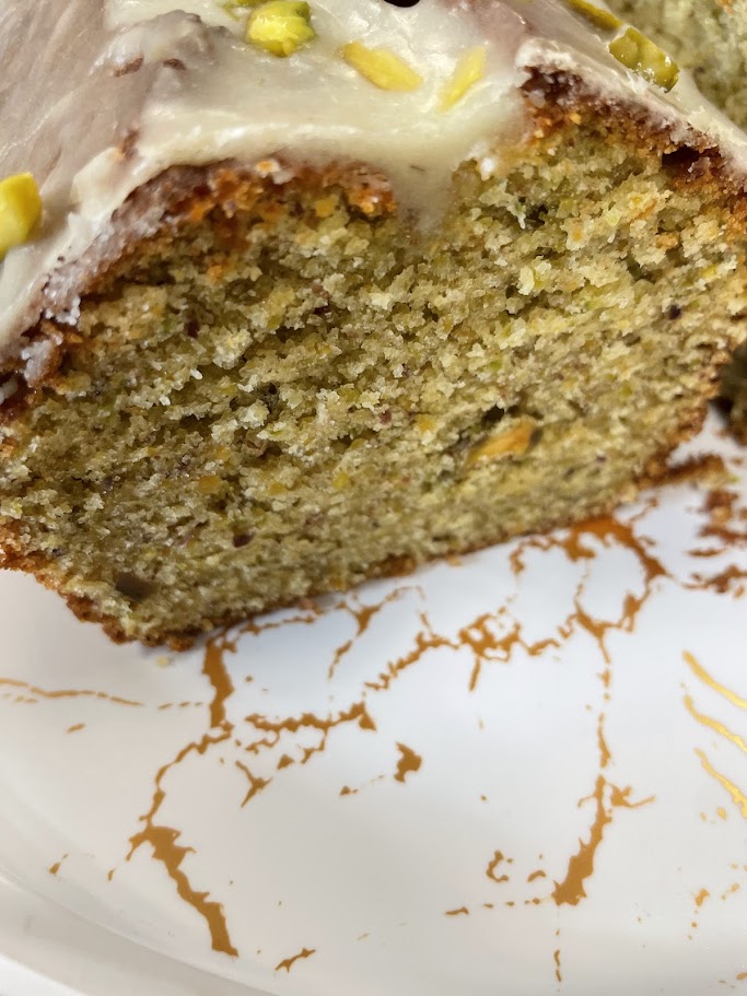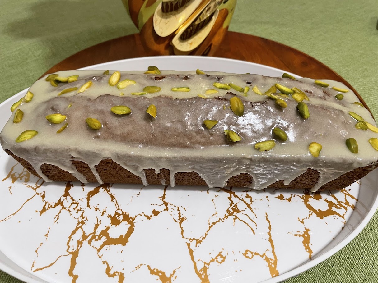 Pour le glaçage, mélanger le sucre glace avec 4 ou 5 c à soupe d'eau, vous verrez a la texture, mettre sur le cake froid et rajouter quelques pistaches pour la décoration