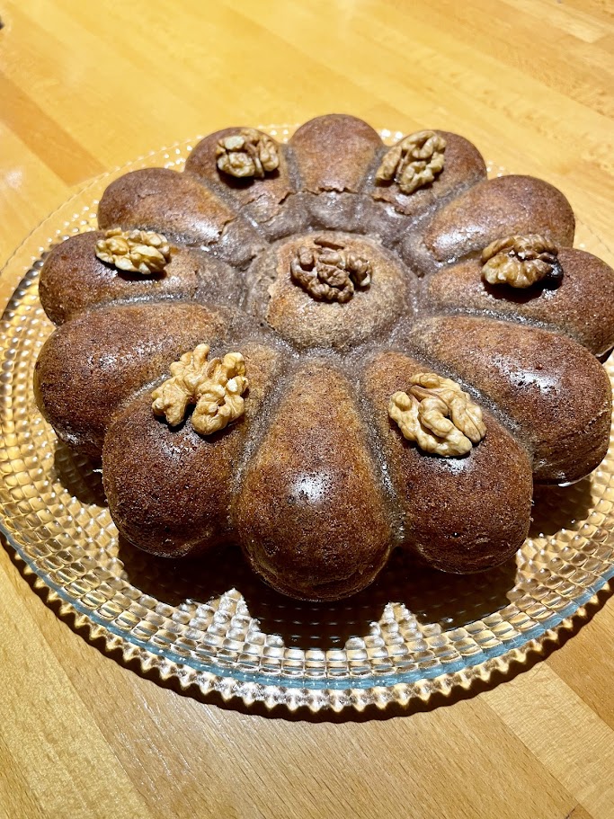 Mixer les 300 g de noix moins 3/4 pour la décoration pour obtenir une poudre fine