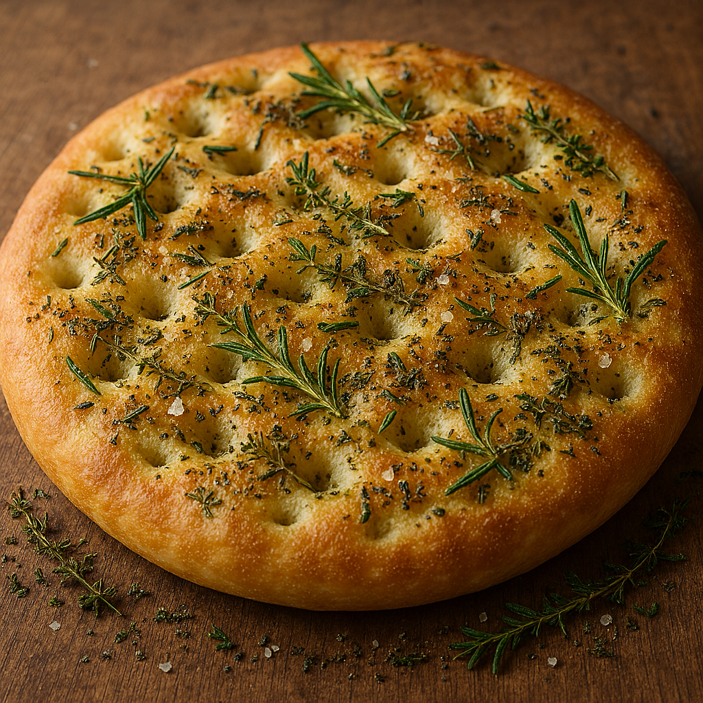 Enfournez la focaccia et baissez la température à 220°C. Laissez cuire au four pendant 20 à 25 minutes, jusqu’à ce qu’elle soit bien dorée.