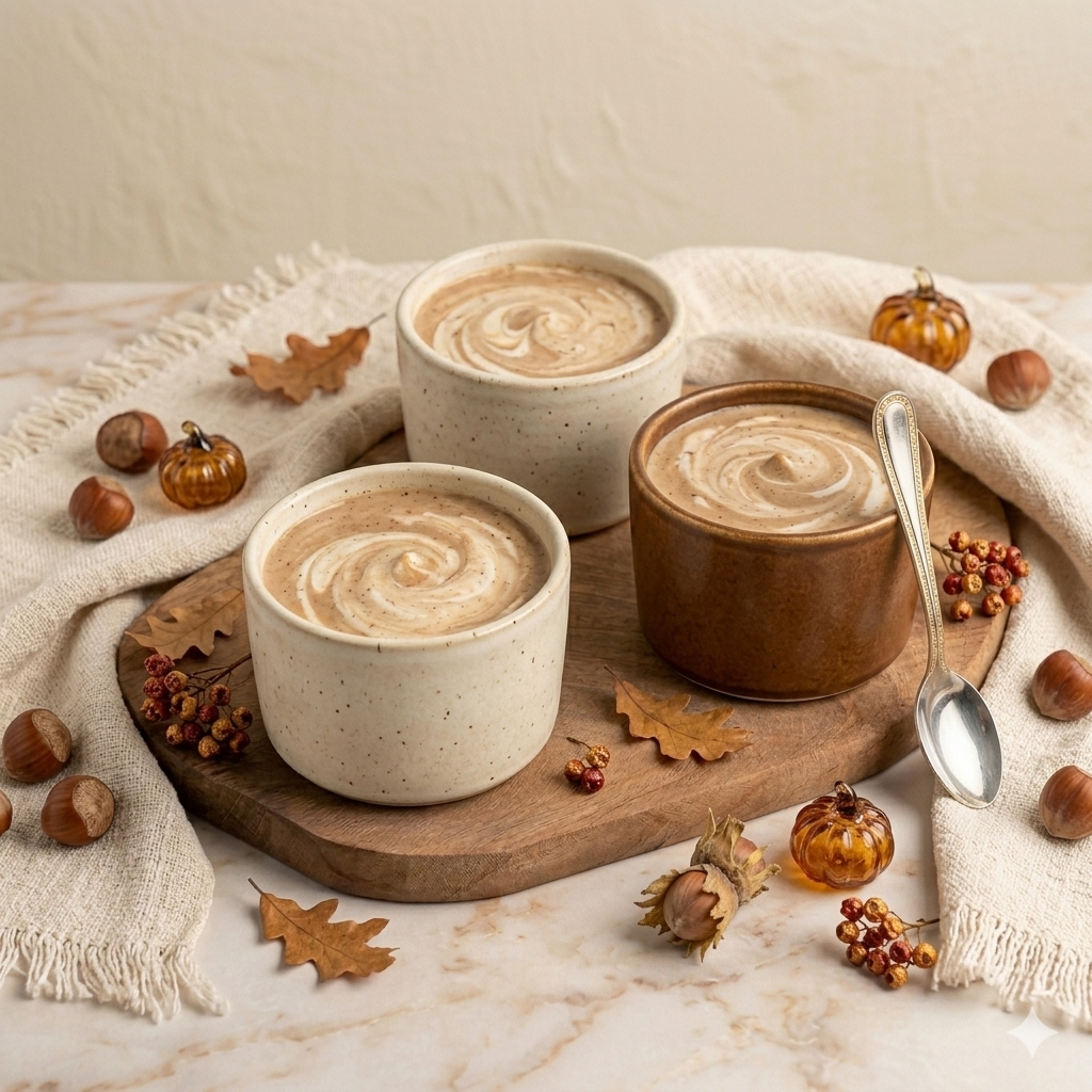 Garnissez des petits pots de cette mousse à la crème de marrons et parsemé de noisettes concassées.