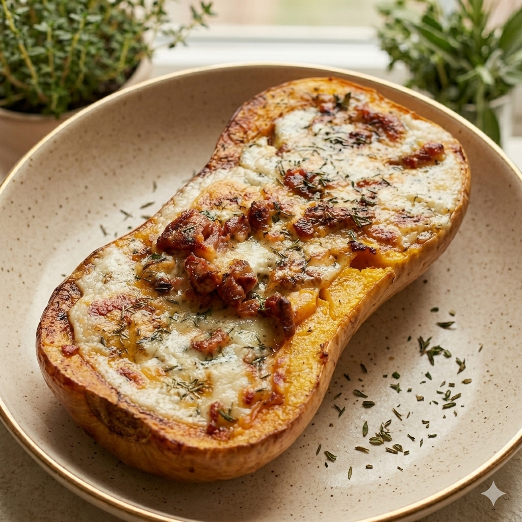 Laver et sécher la butternut. La couper en deux, enlever les pépins.